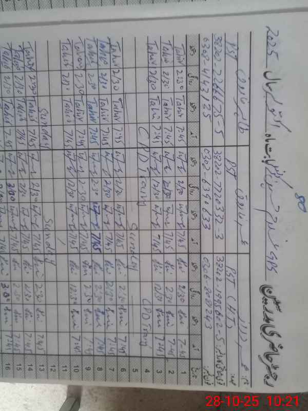 | CNIC | Full Name | Designation | R/C | Absence during last cal. month |