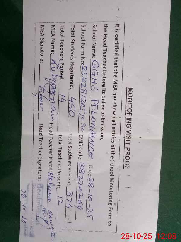 | EMIS Code: 38220264 | Name of School: GGHS PELOWAINCE | |||