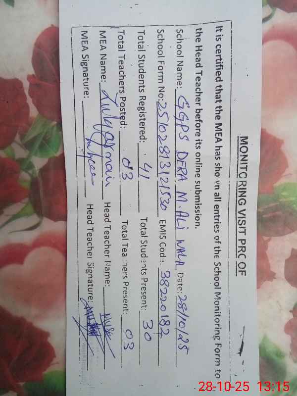 | EMIS Code: 38220182 | Name of School: GGPS DERA MUHAMMAD ALI WALA | |||