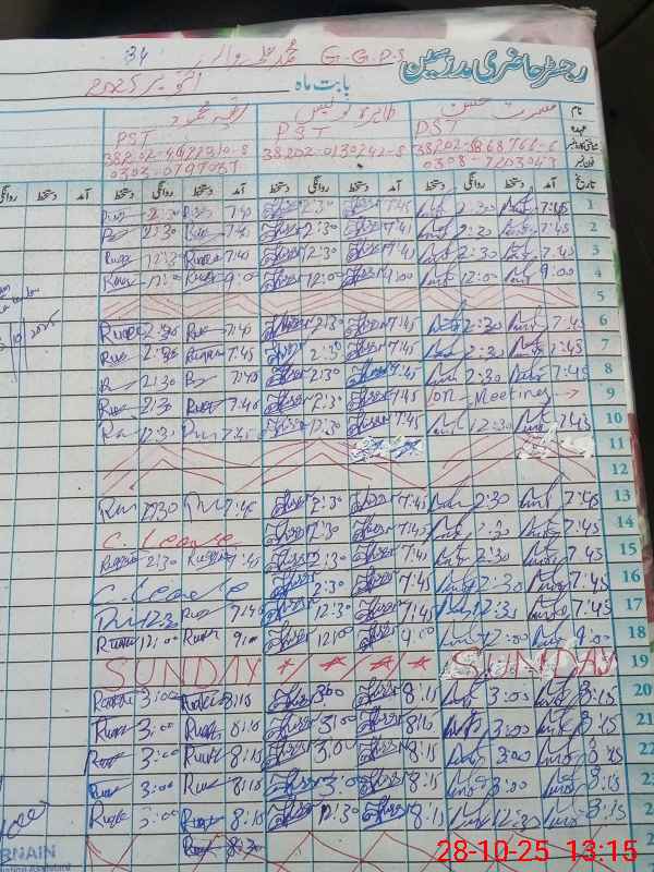 | CNIC | Full Name | Designation | R/C | Absence During Last Calender Month |