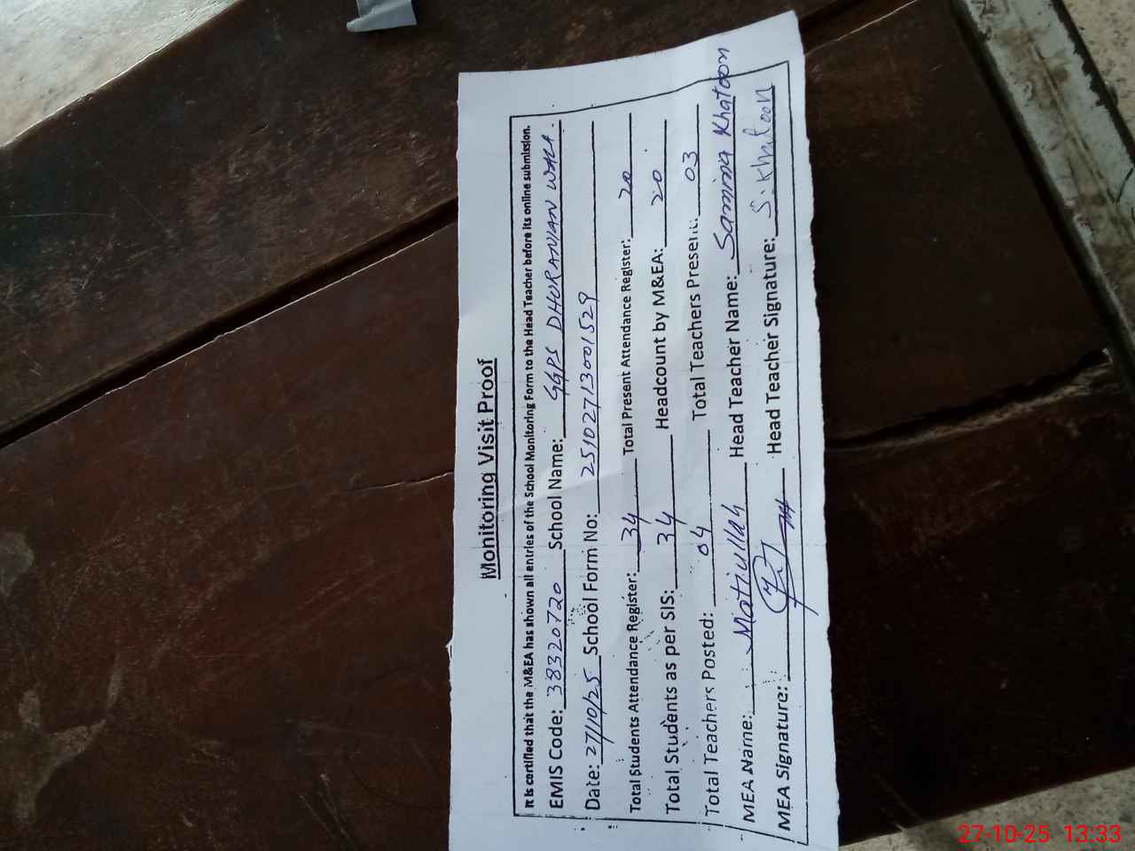 | EMIS Code: 38320720 | Name of School: GGPS DHURANIAN WALA | |||