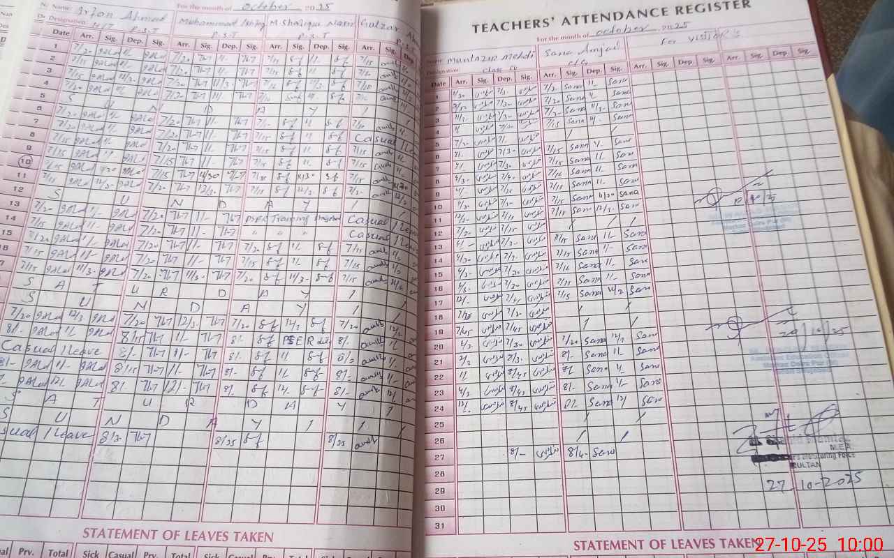 | Attendance Register | Head Teacher | MEA with School | Visit Proof |