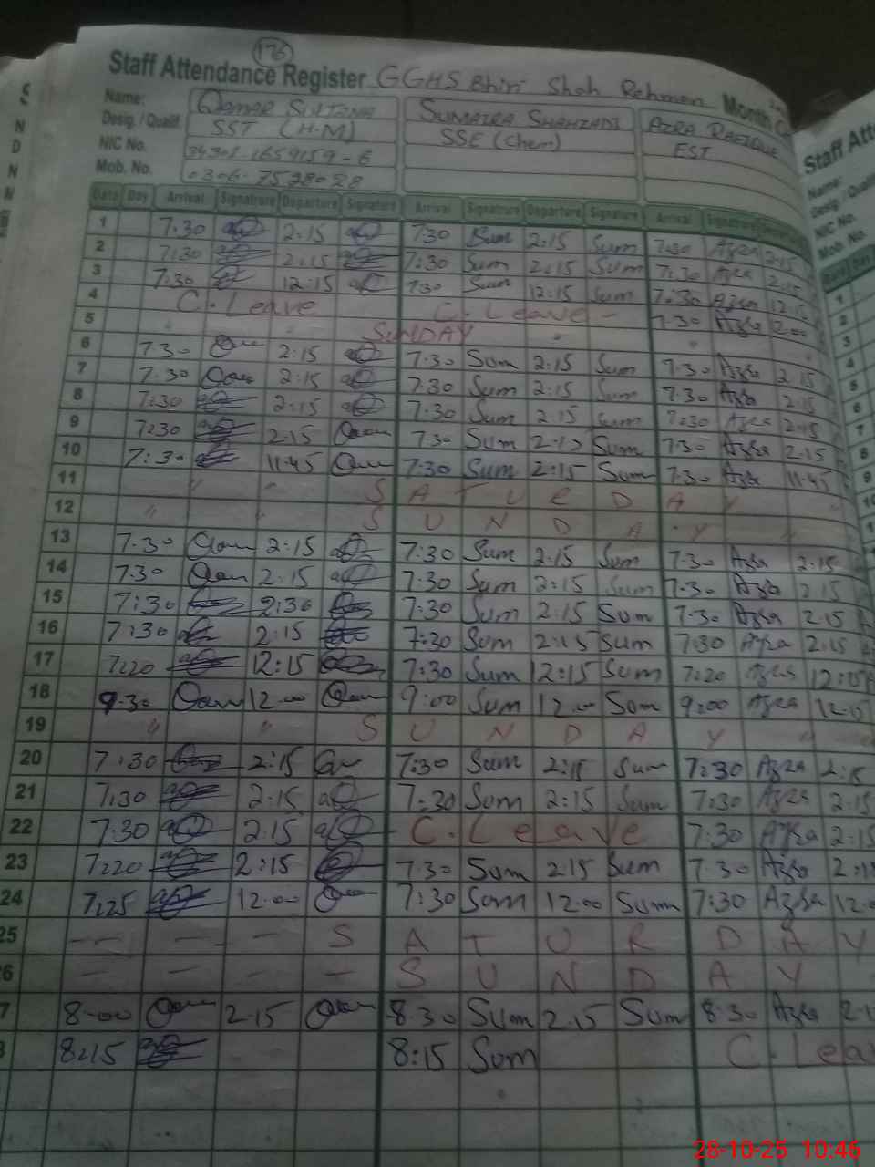 | Name: Qa**** Su**** Designation: (School Headmaster's/Headmistress's) SST Phone/Cell Number: 03**** |