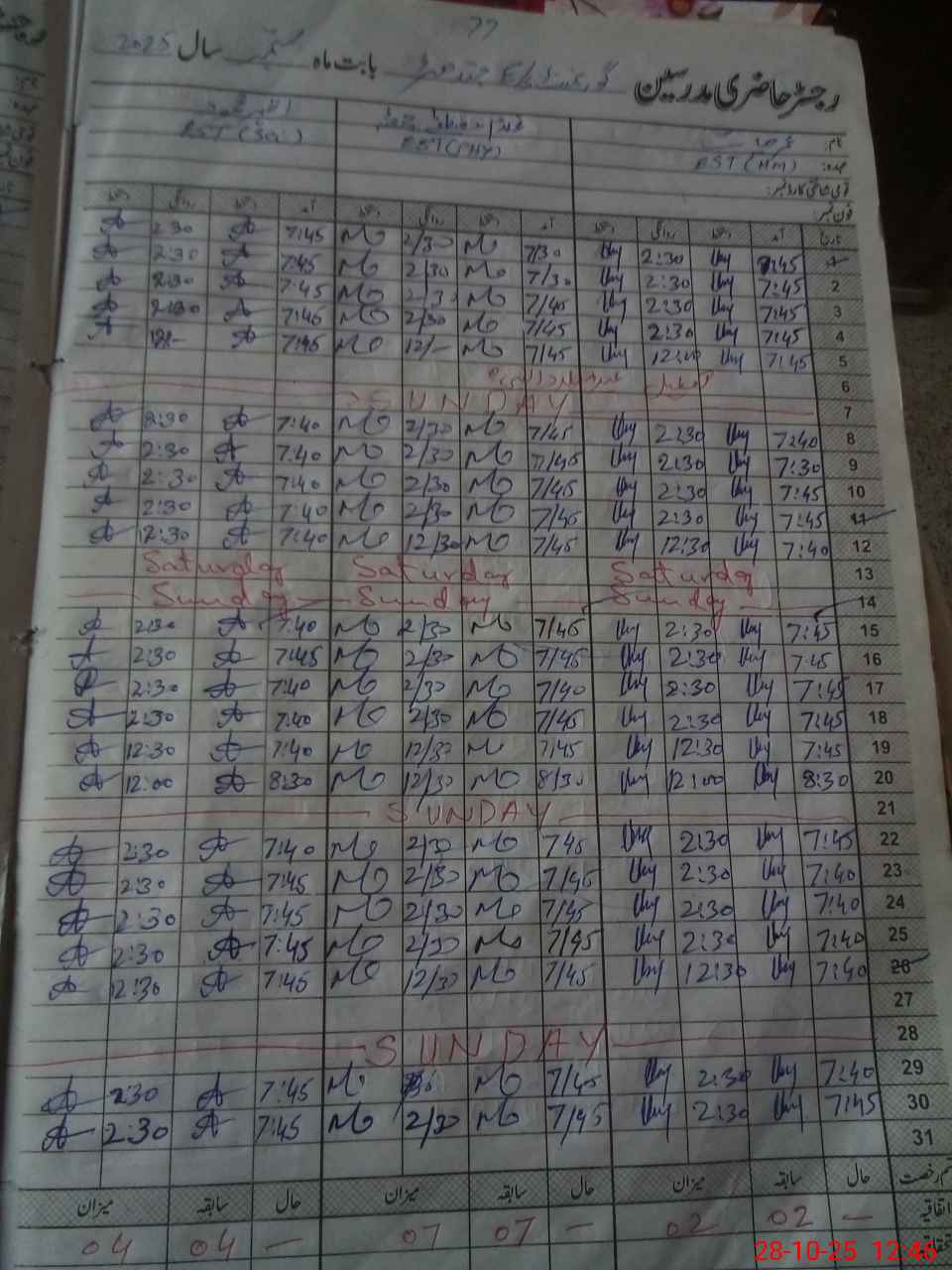 | CNIC | Full Name | Designation | R/C | Absence During Last Calender Month |