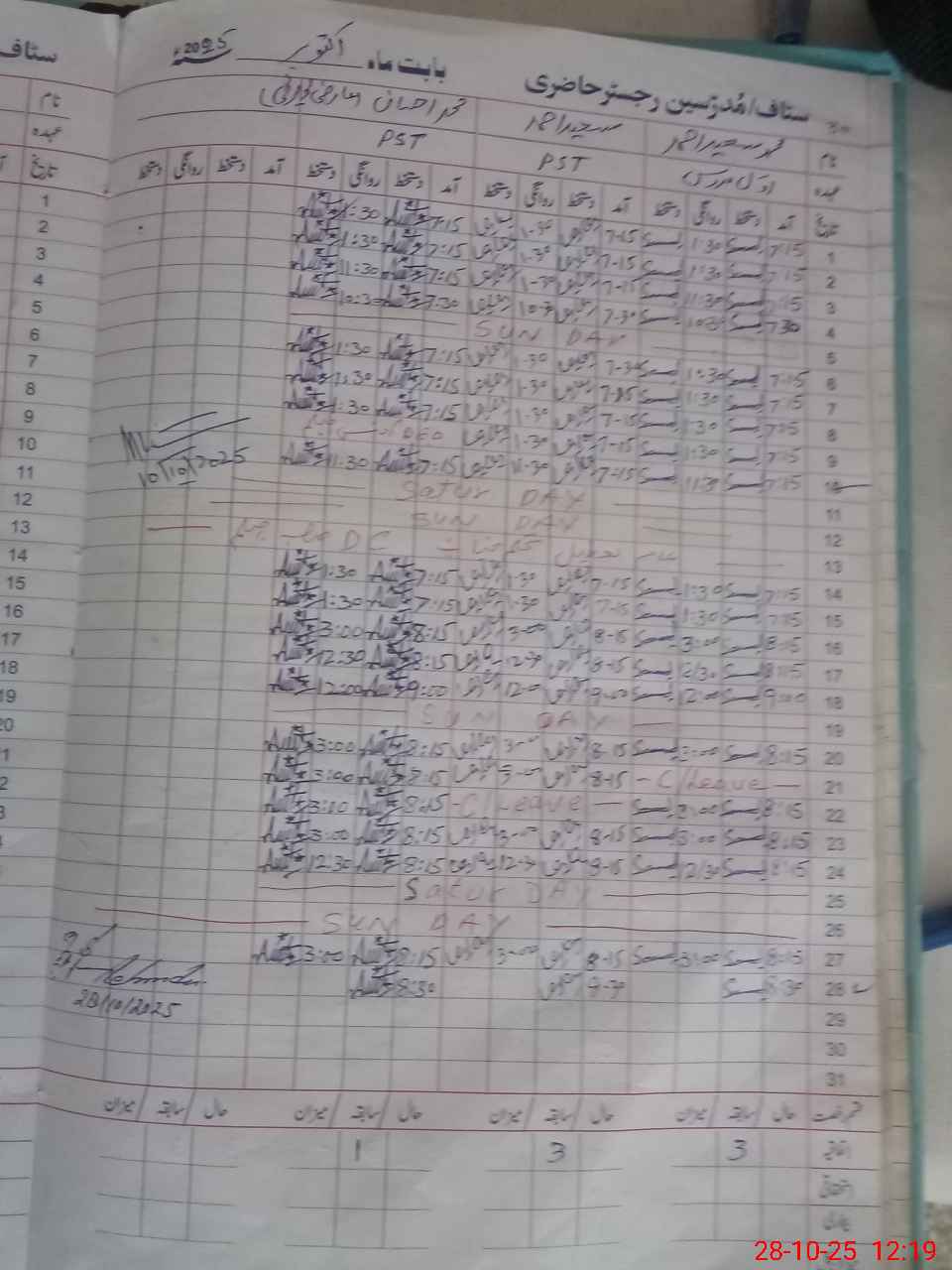 | CNIC | Full Name | Designation | R/C | Absence During Last Calender Month |