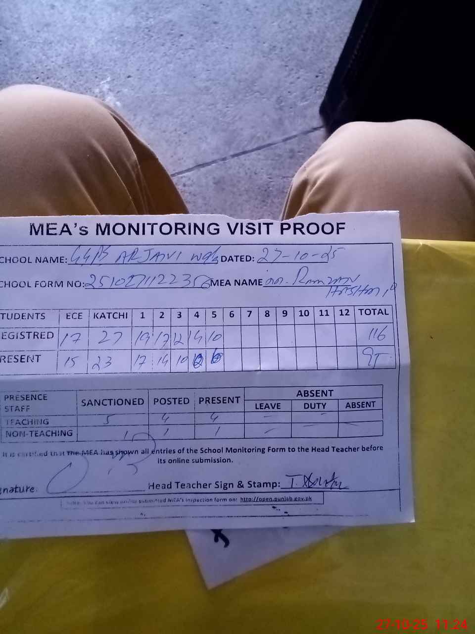 | EMIS Code: 36410423 | Name of School: GGPS ARJANI WALA NO.1 SARAI SIDHU | |||