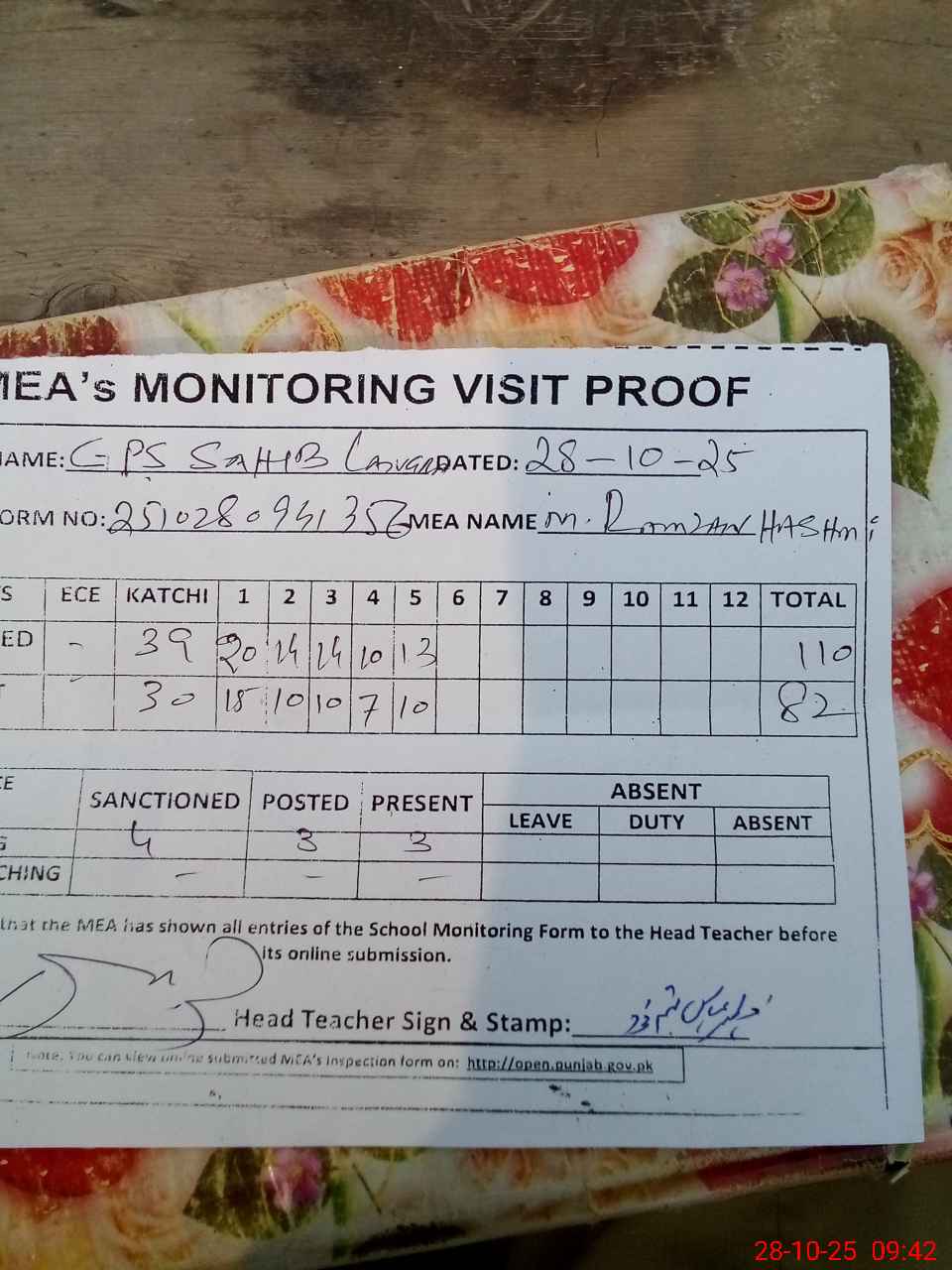 | EMIS Code: 36410249 | Name of School: GPS SAHIB LANGARA, SARAI SIDHU | |||