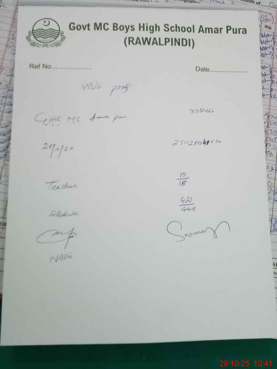 | EMIS Code: 37330123 | Name of School: GHS MC AMAR PURA RAWALPINDI | |||