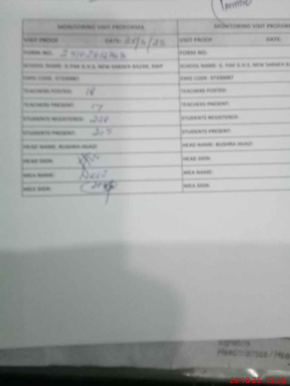 | Certified that this School was Inspected by the Undersigned MEA/DMO Today and the Information Stated Above is as Per Record. | |||||