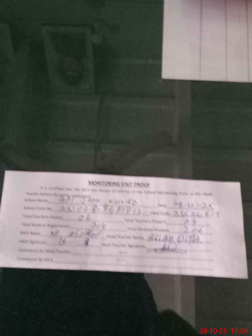 | Attendance Register | Head Teacher | MEA with School | Visit Proof |