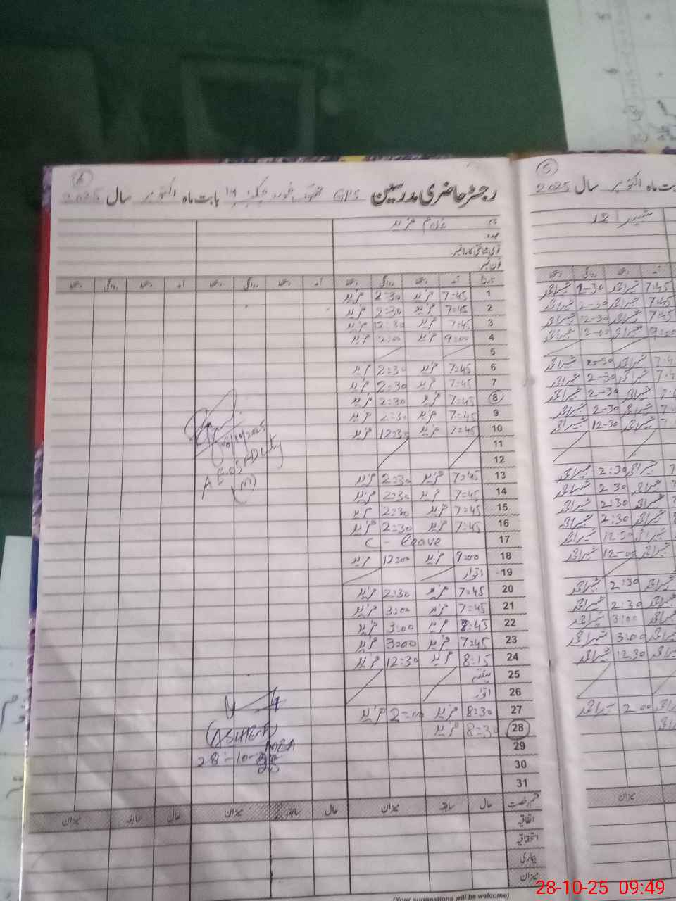 | Leave | Duty | Absent | Maternity | Medical | Ex- Pak |