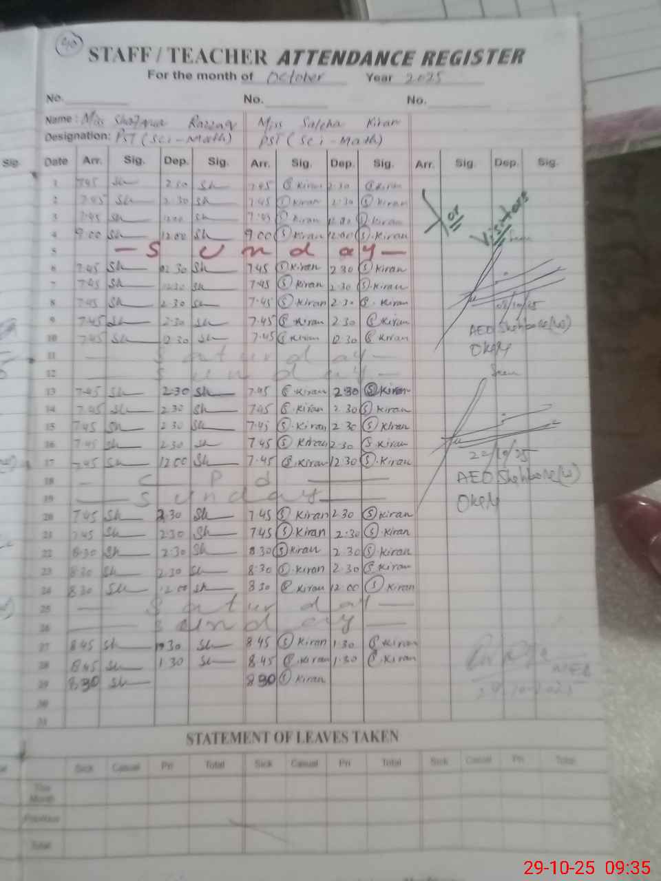 | Monitoring Date: 29-10-2025 | Start Time: 29-10-2025 09:33 AM | End Time: 29-10-2025 09:56 AM | Name of MEA: KH**** WA**** | |