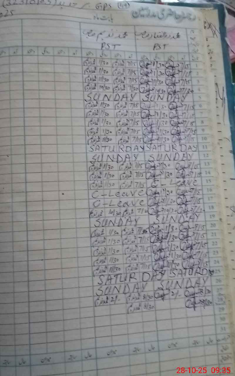 | CNIC | Full Name | Designation | R/C | Absence During Last Calender Month |
