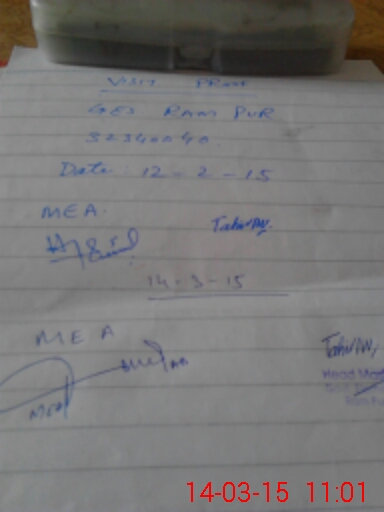 | Monitoring Date: 14-03-2015 | Start Time: 14-03-2015 10:38 AM | End Time: 14-03-2015 11:08 AM | Name of MEA: Al**** Bu**** | |