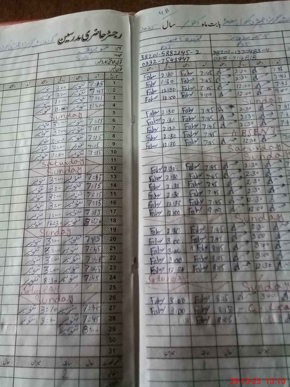 | CNIC | Full Name | Designation | R/C | Absence During Last Calender Month |