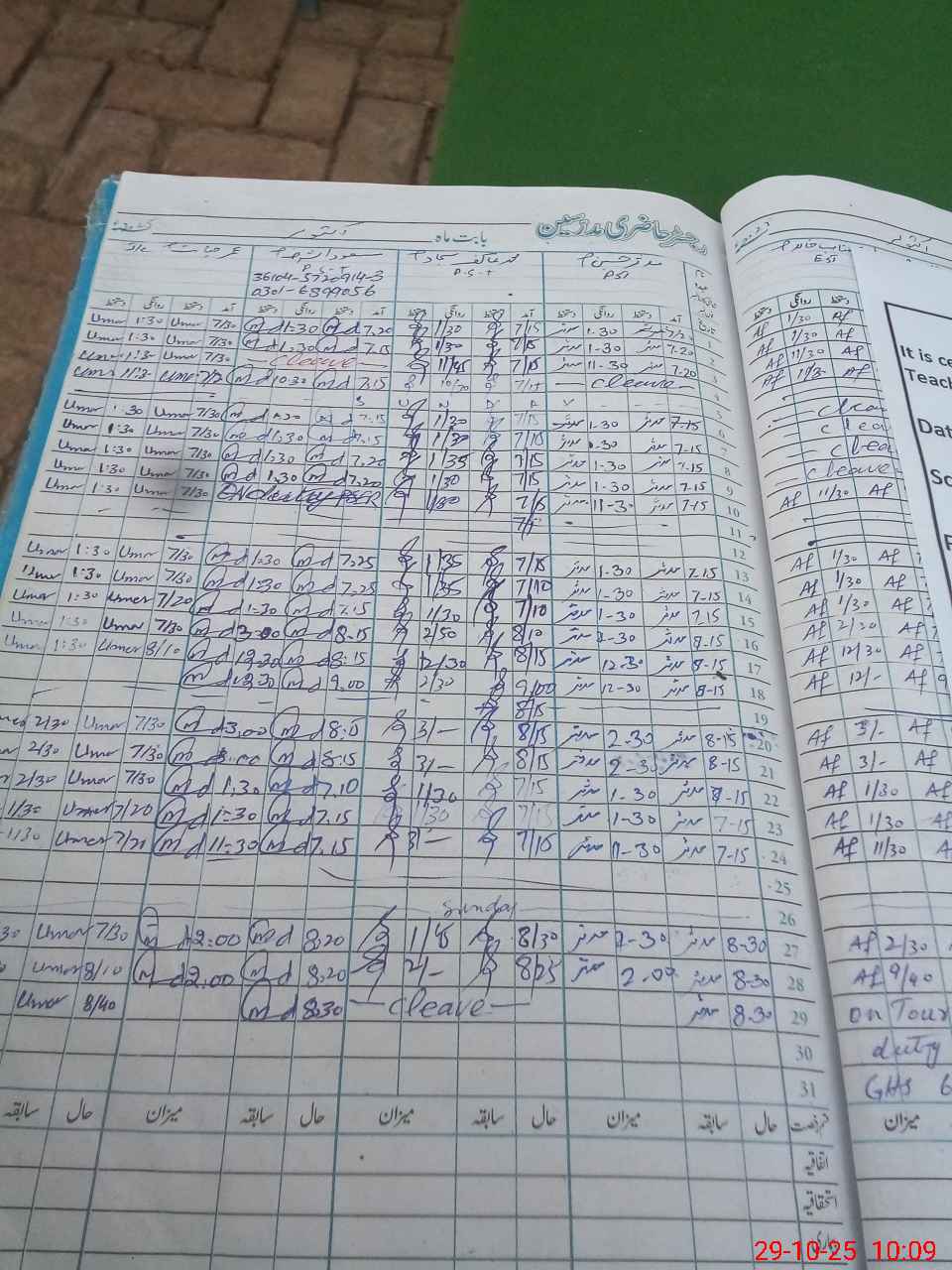| Name: FI**** HU**** Designation: (School Headmaster's/Headmistress's) S.S.T.(CS) Phone/Cell Number: 03**** |