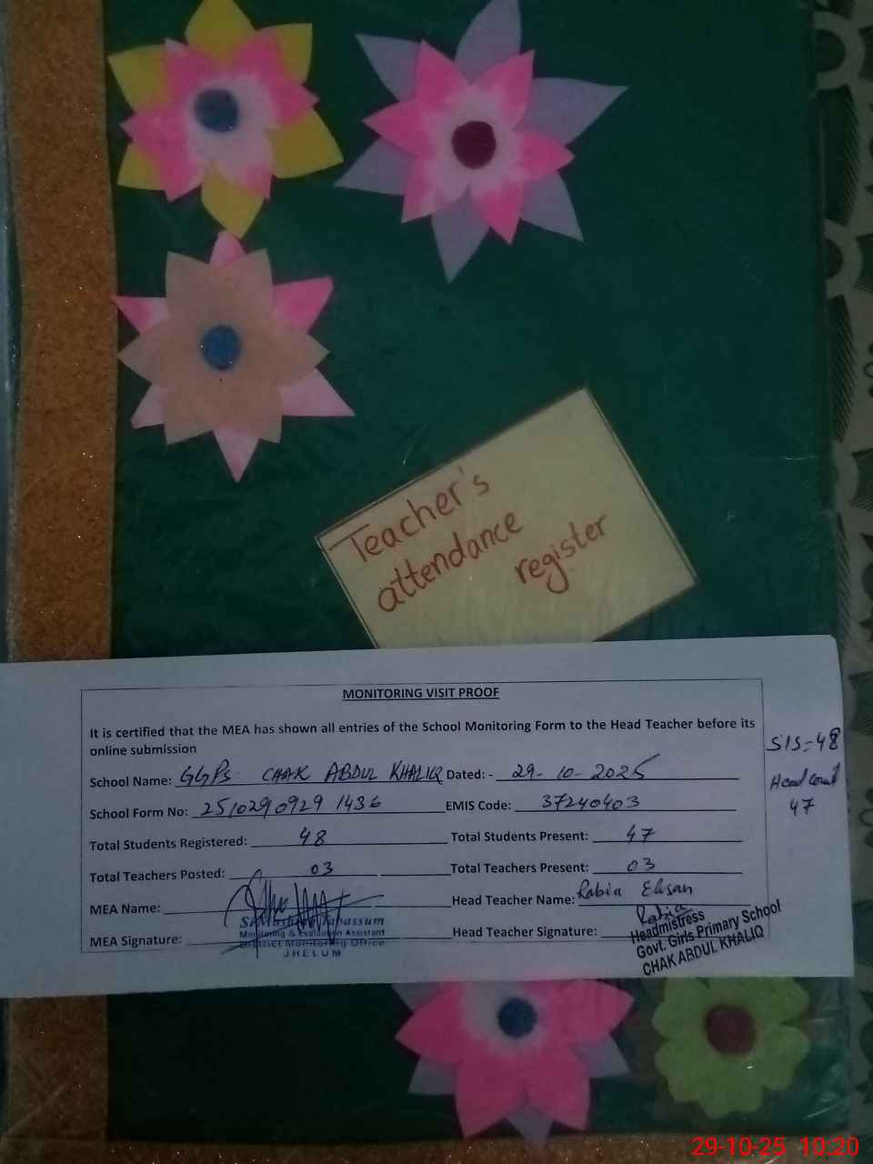 | EMIS Code: 37240403 | Name of School: GGPS CHAK ABDUL KHALIQ | |||