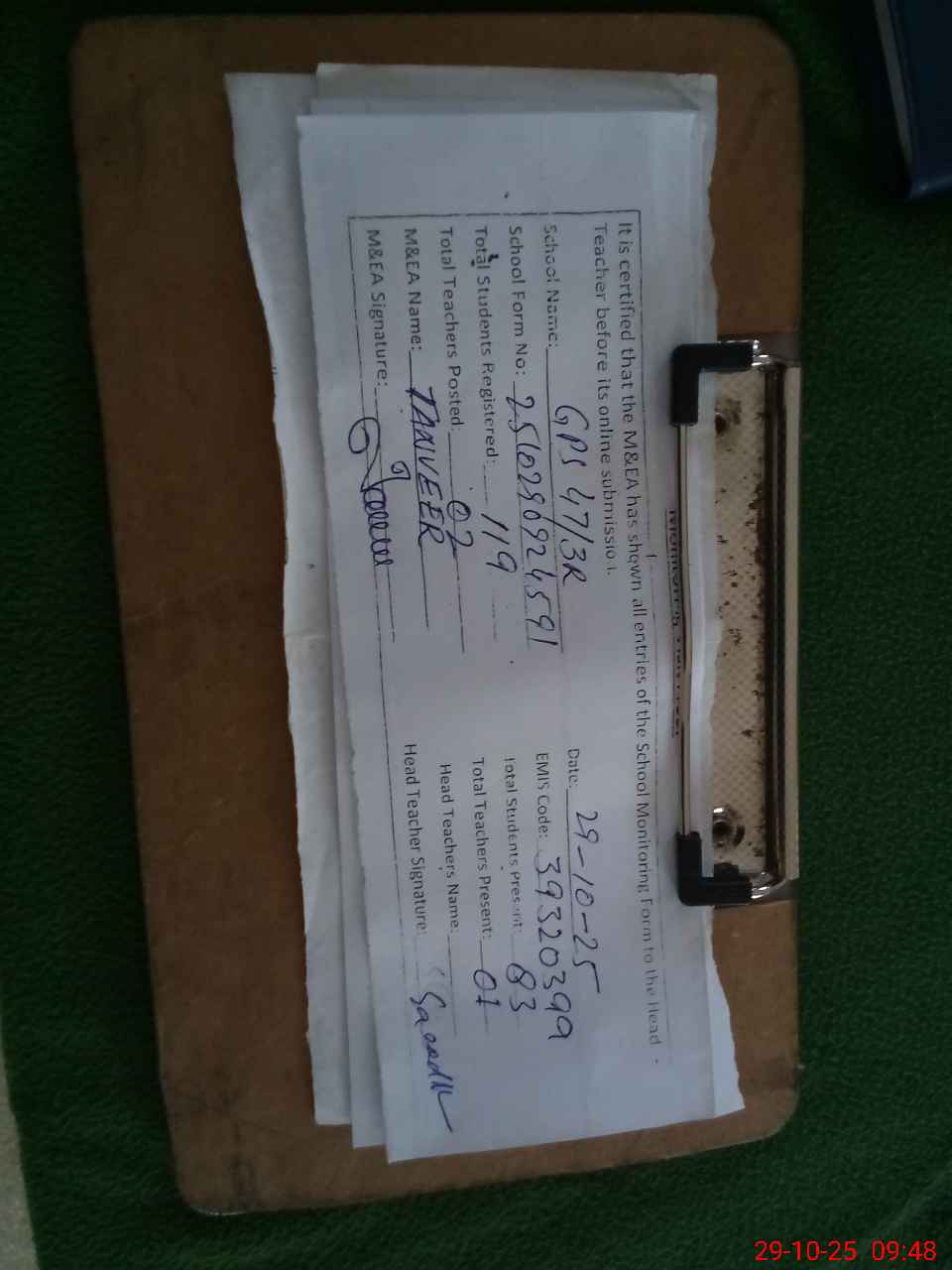 | Certified that this School was Inspected by the Undersigned MEA/DMO Today and the Information Stated Above is as Per Record. | |||||