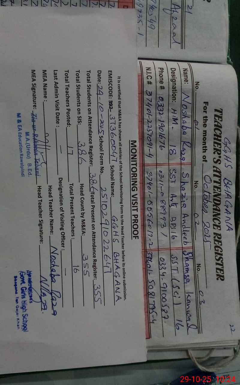 | EMIS Code: 37360047 | Name of School: GGHS BHAGANA | |||