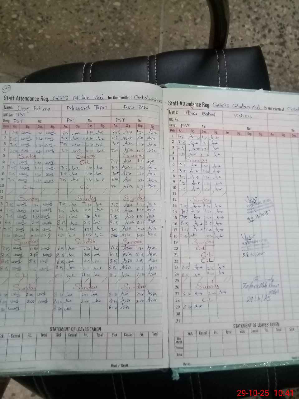 | Leave | Duty | Absent | Maternity | Medical | Ex- Pak |