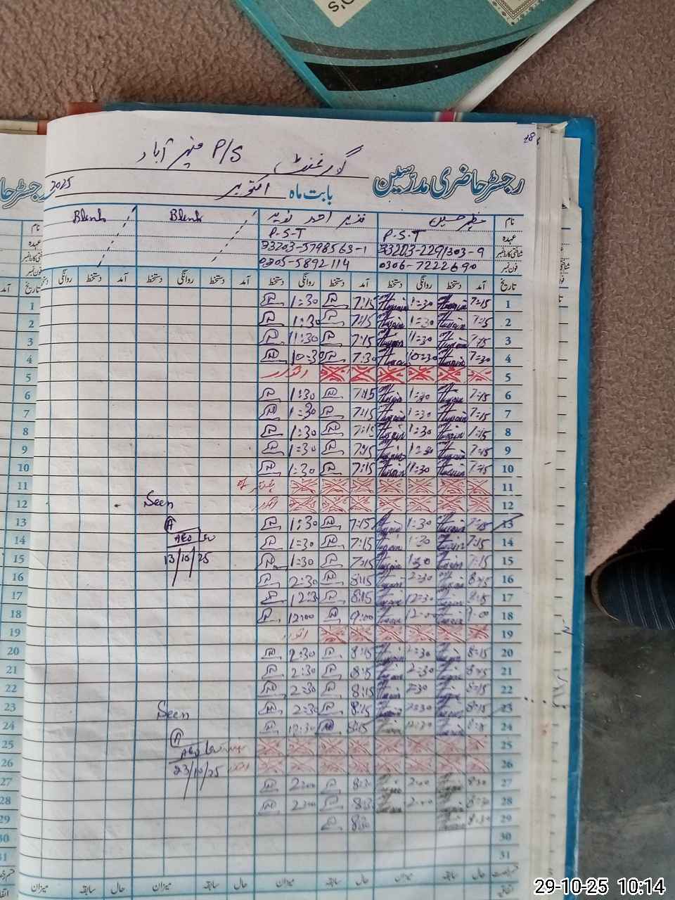 | Name: MA**** HU**** Designation: (School Headmaster's/Headmistress's) PST Phone/Cell Number: 03**** |