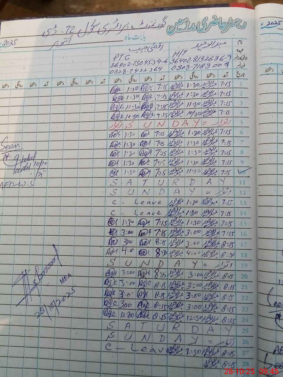 | Name: AB**** WA**** Designation: (School Headmaster's/Headmistress's) PST Phone/Cell Number: 03**** |