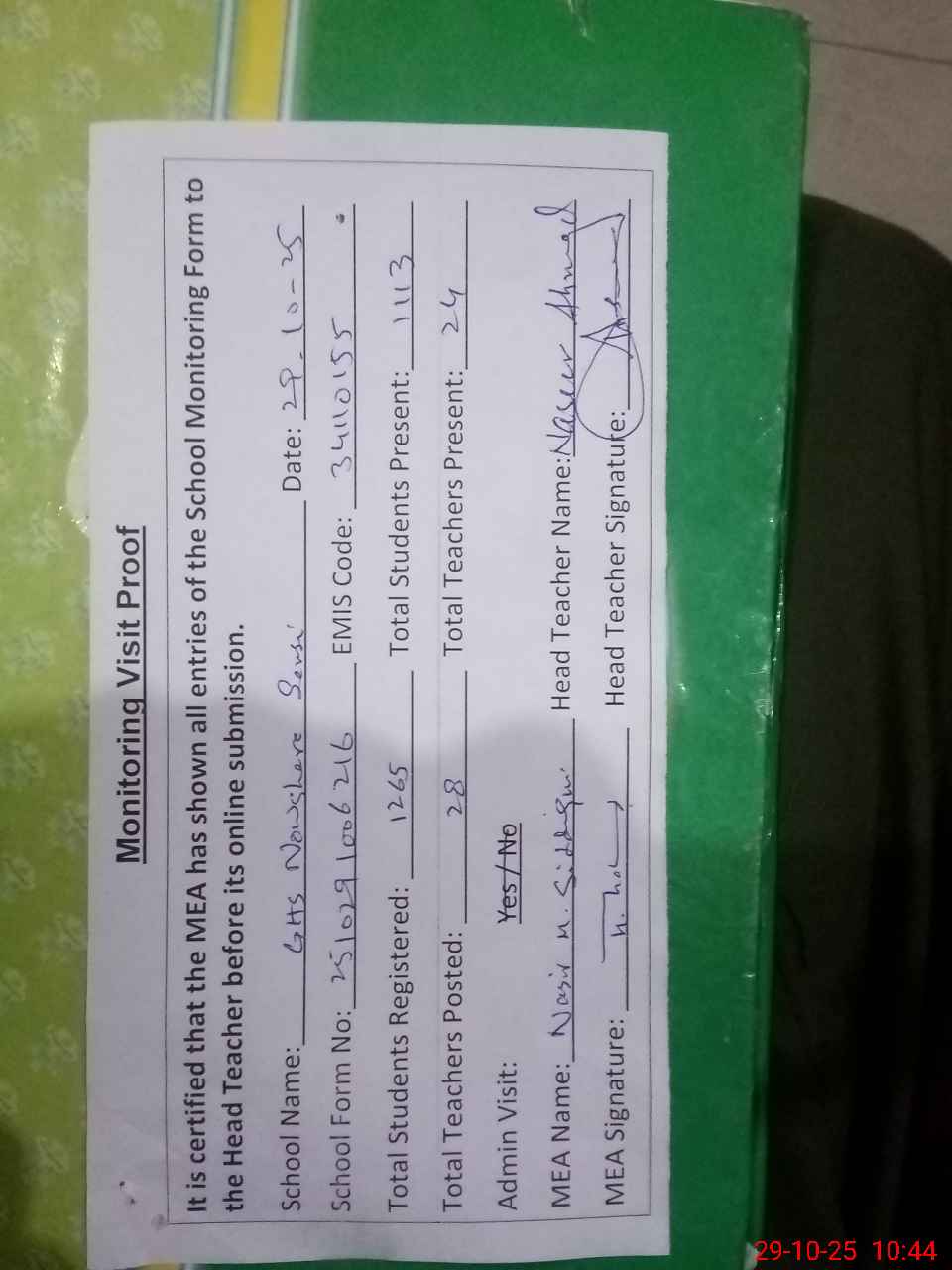 | EMIS Code: 34110155 | Name of School: GHS NOWSHERA SANSI | |||