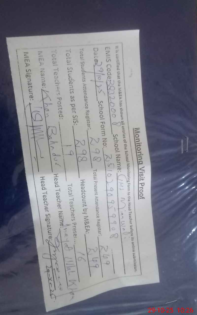 | EMIS Code: 38320008 | Name of School: GHS MIANWALI NEAR RAILWAY STATION | |||