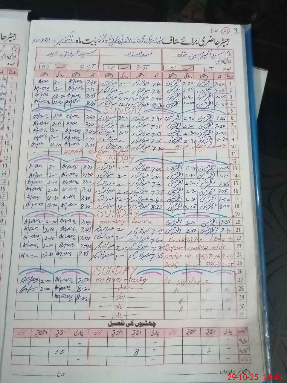 | 35**** | Zu**** Ah**** | WAER MAN | 0 | 0 | 30 | 0 | 0 | 0 | 0 | 0 | 0 | Absent (Un-Authorized) | |