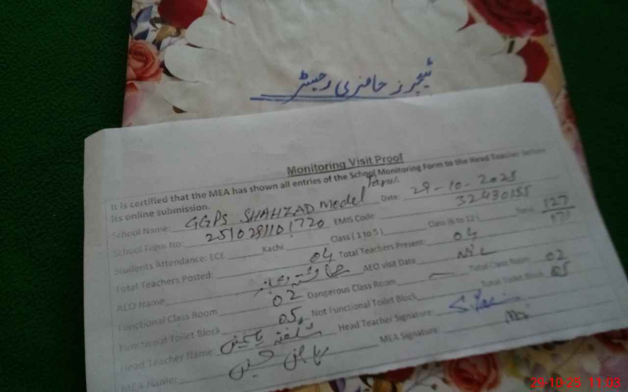 | EMIS Code: 32430155 | Name of School: GGPS SHAHZAD MODEL FARM | |||