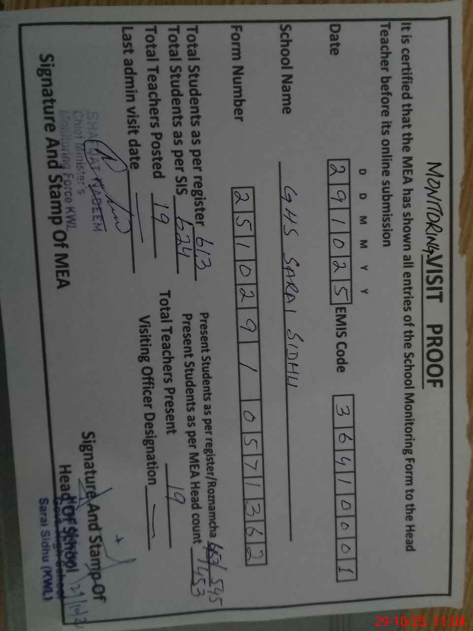 | EMIS Code: 36410001 | Name of School: GHS SARAI SIDHU | |||