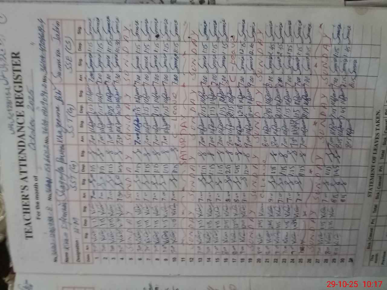 | No. of Students Present - Male | 10 | 0 | 12 | 6 | 1 | 1 | 3 | 0 | 0 | 0 | 0 | 0 | 0 | 33 | ||