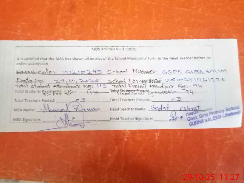 | EMIS Code: 37210293 | Name of School: GGPS GURRA SALIM | |||