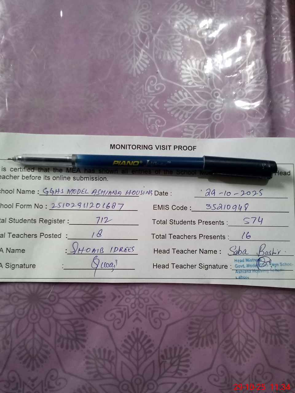 | EMIS Code: 35210949 | Name of School: GGHS MODEL ASHIANA HOUSING SCHEME NO. 1 FEROZPUR ROAD | |||