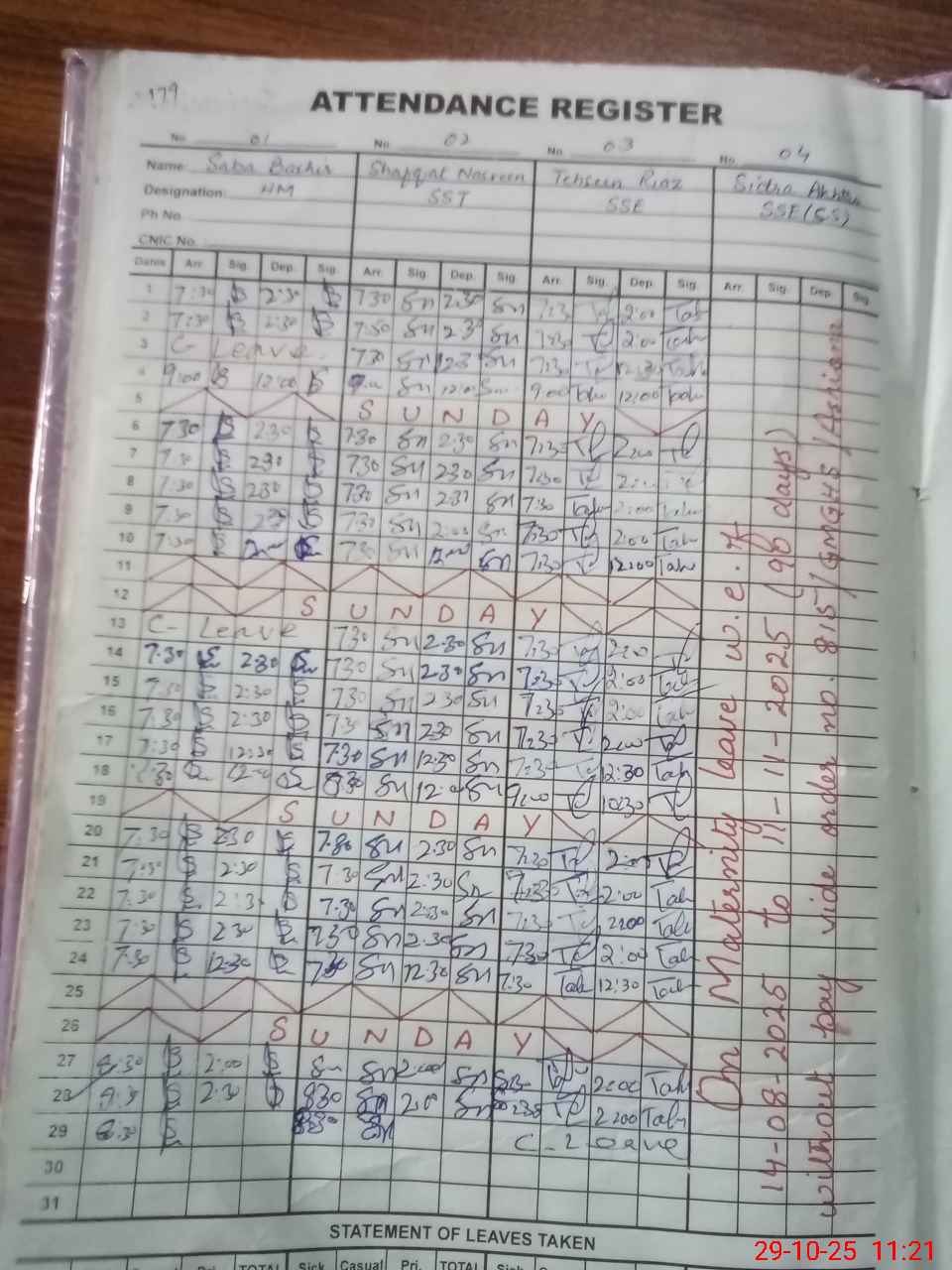 | 35**** | Si**** Ak**** | Contract | 30 | 0 | 0 | 30 | 0 | 0 | 0 | 0 | 0 | Maternity | |