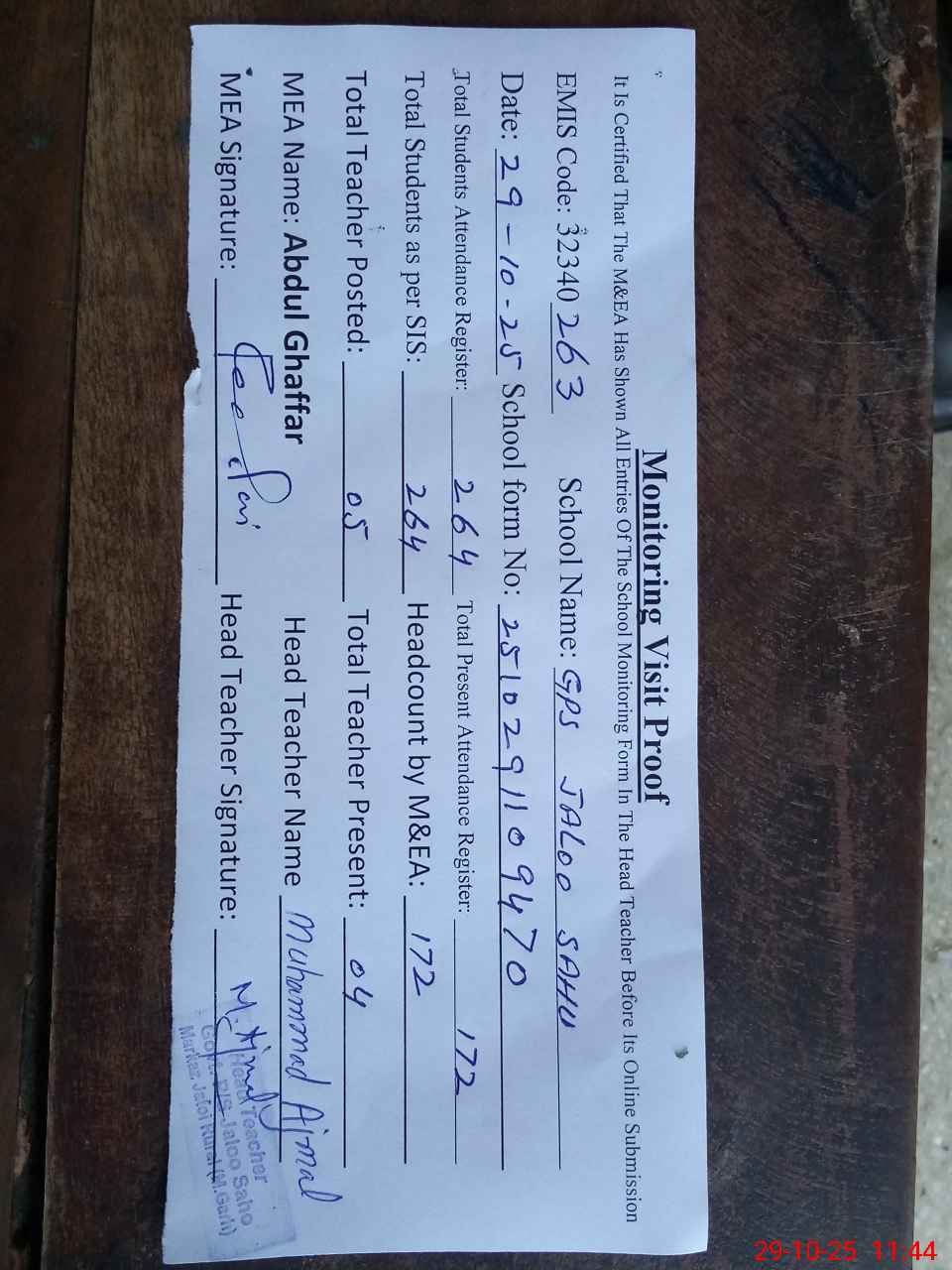 | EMIS Code: 32340263 | Name of School: GPS JALOO SAHU | |||