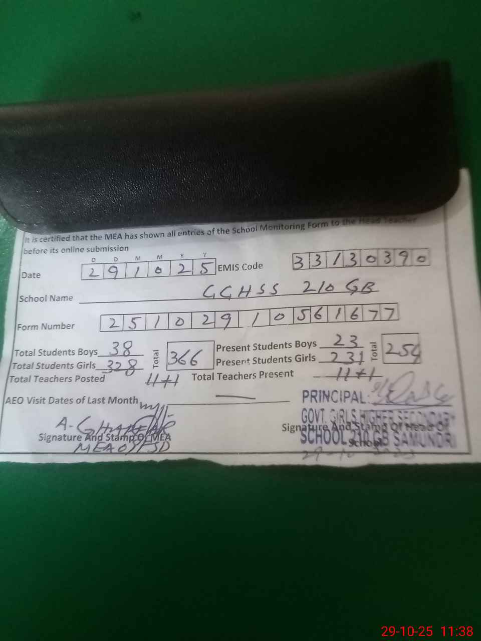 | EMIS Code: 33130390 | Name of School: GGHSS CHAK NO 210 GB | |||
