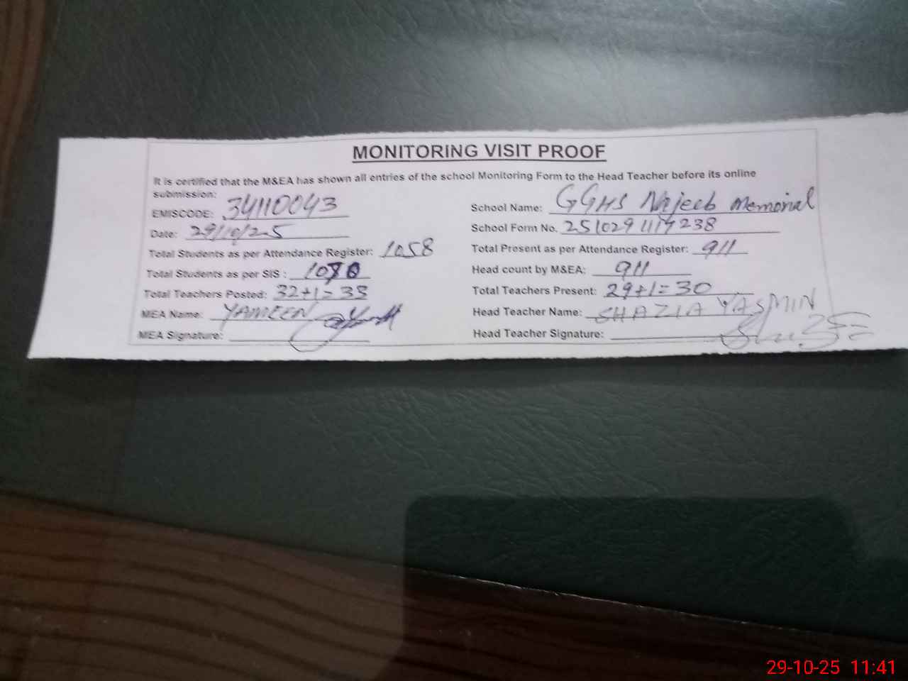 | EMIS Code: 34110043 | Name of School: GGHS NAJEEB MEMORIAL GUJRANWALA | |||