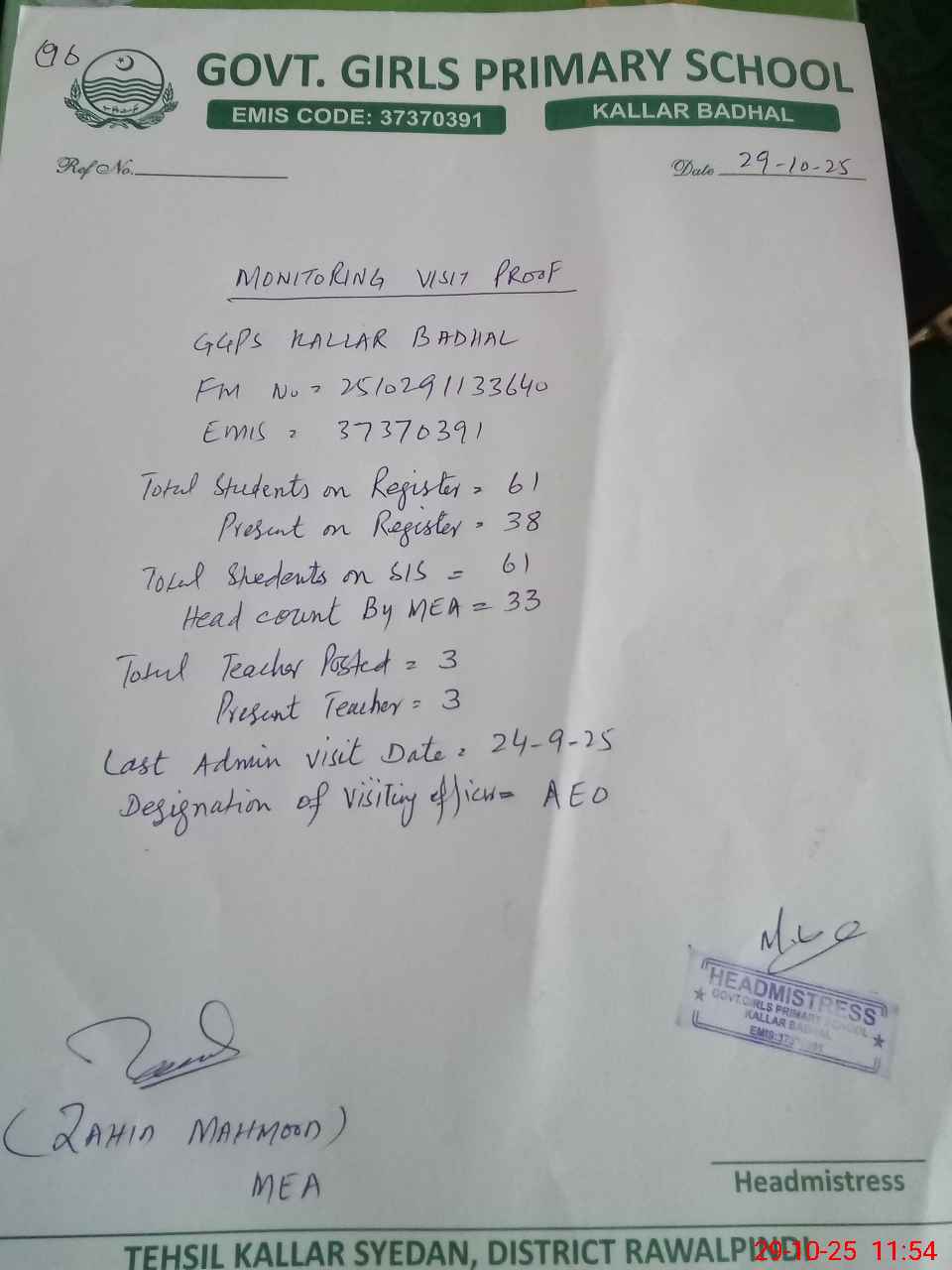 | EMIS Code: 37370391 | Name of School: GGPS KALLAR BADHAL | |||