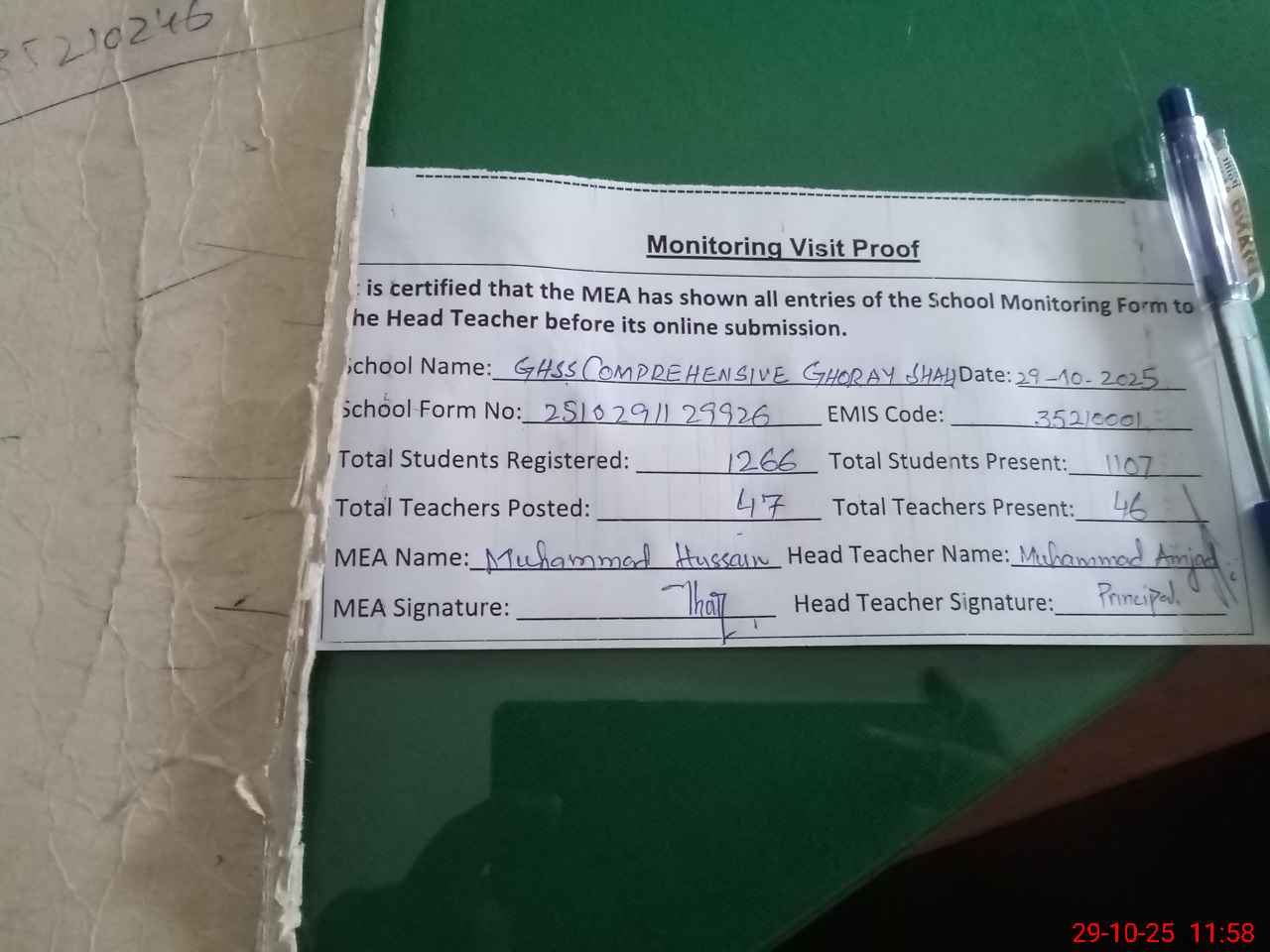 | EMIS Code: 35210001 | Name of School: GHSS COMPREHENSIVE GHORAY SHAH | |||