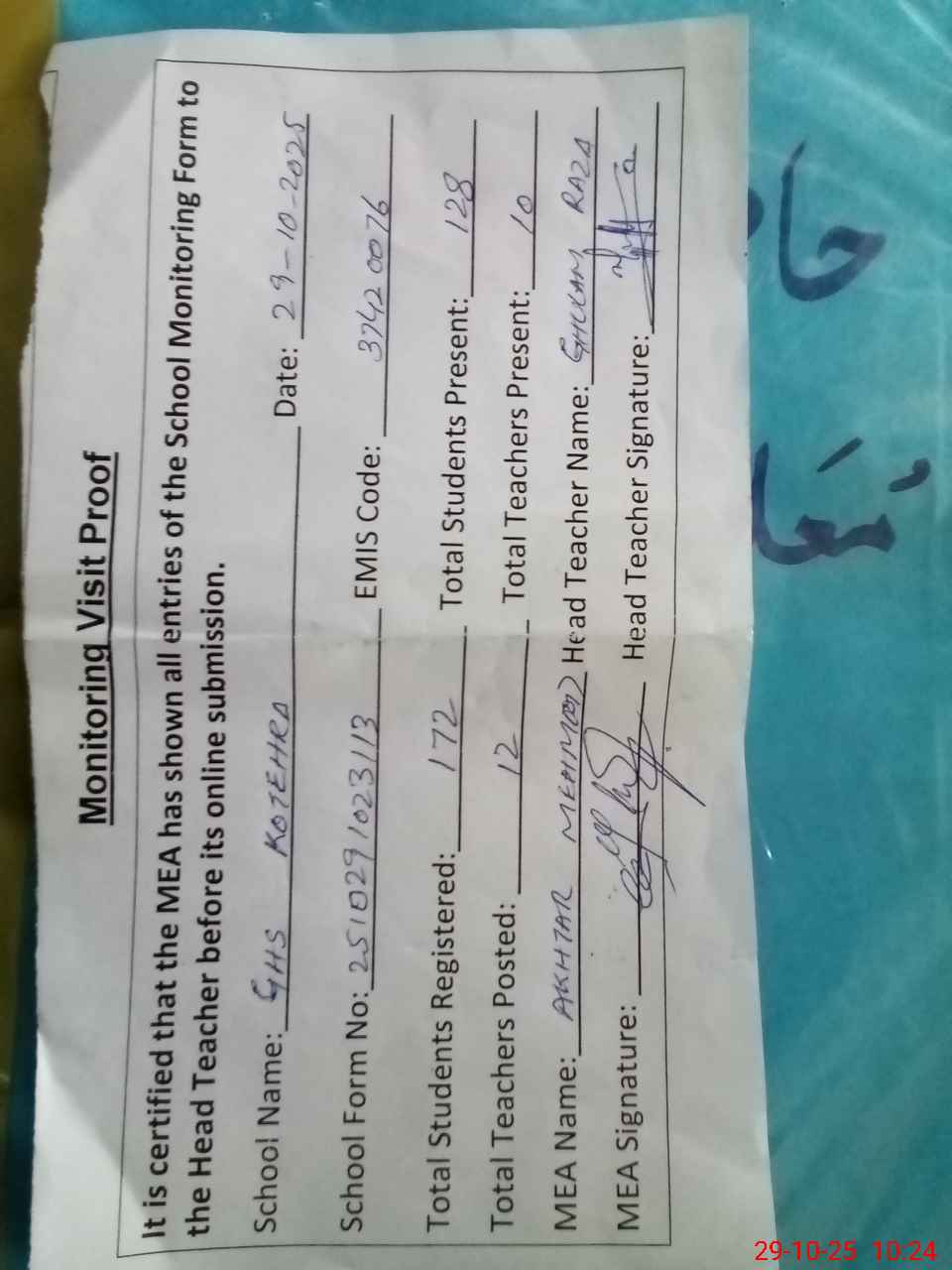 | EMIS Code: 37420076 | Name of School: GHS KOTEHRA | |||
