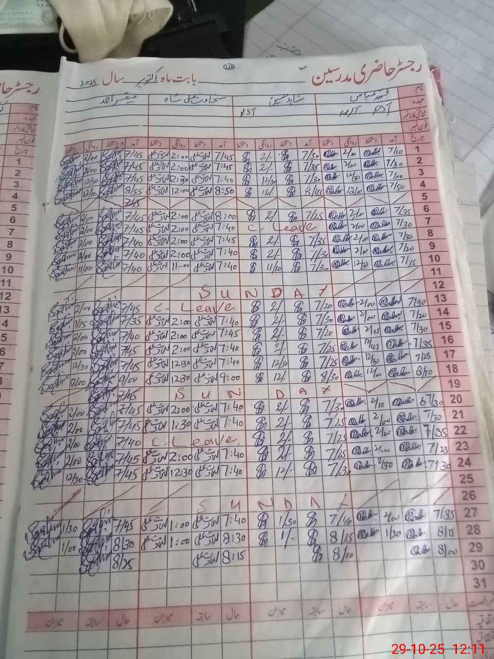 | Remarks (Use Separate Page if Required): Pst Talha Tahir absent since 23 Oct 2025 He is a hapchual 35220265 Gps Darulaloom albaquiat shahdarah 29 Oct 2025 | |||||