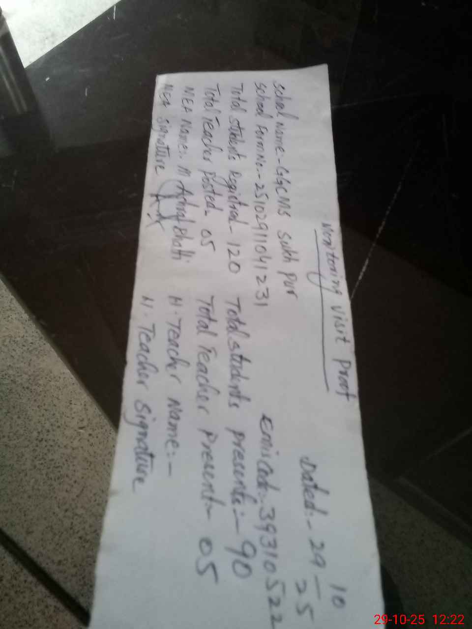 | Attendance Register | Head Teacher | MEA with School | Visit Proof |