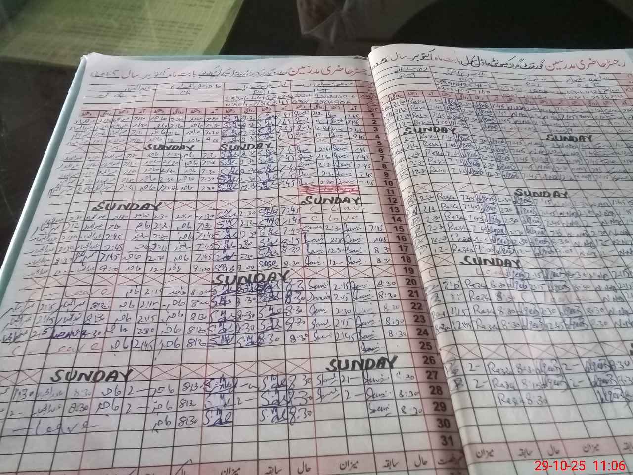 | CNIC | Full Name | Designation | R/C | Absence During Last Calender Month |