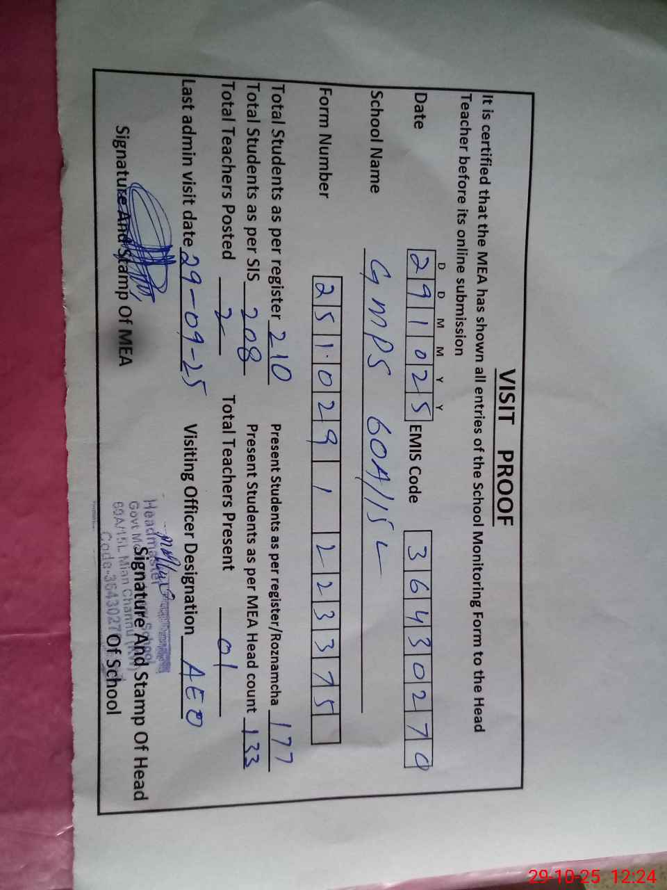 | Certified that this School was Inspected by the Undersigned MEA/DMO Today and the Information Stated Above is as Per Record. | |||||