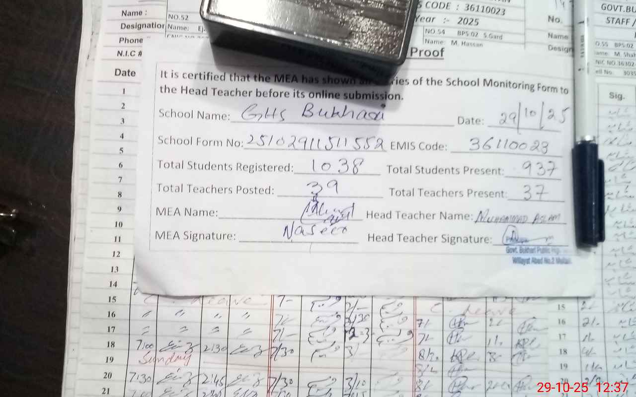 | EMIS Code: 36110023 | Name of School: GHS BUKHARI PUBLIC WILAYAT ABAD NO.2 MULTAN | |||