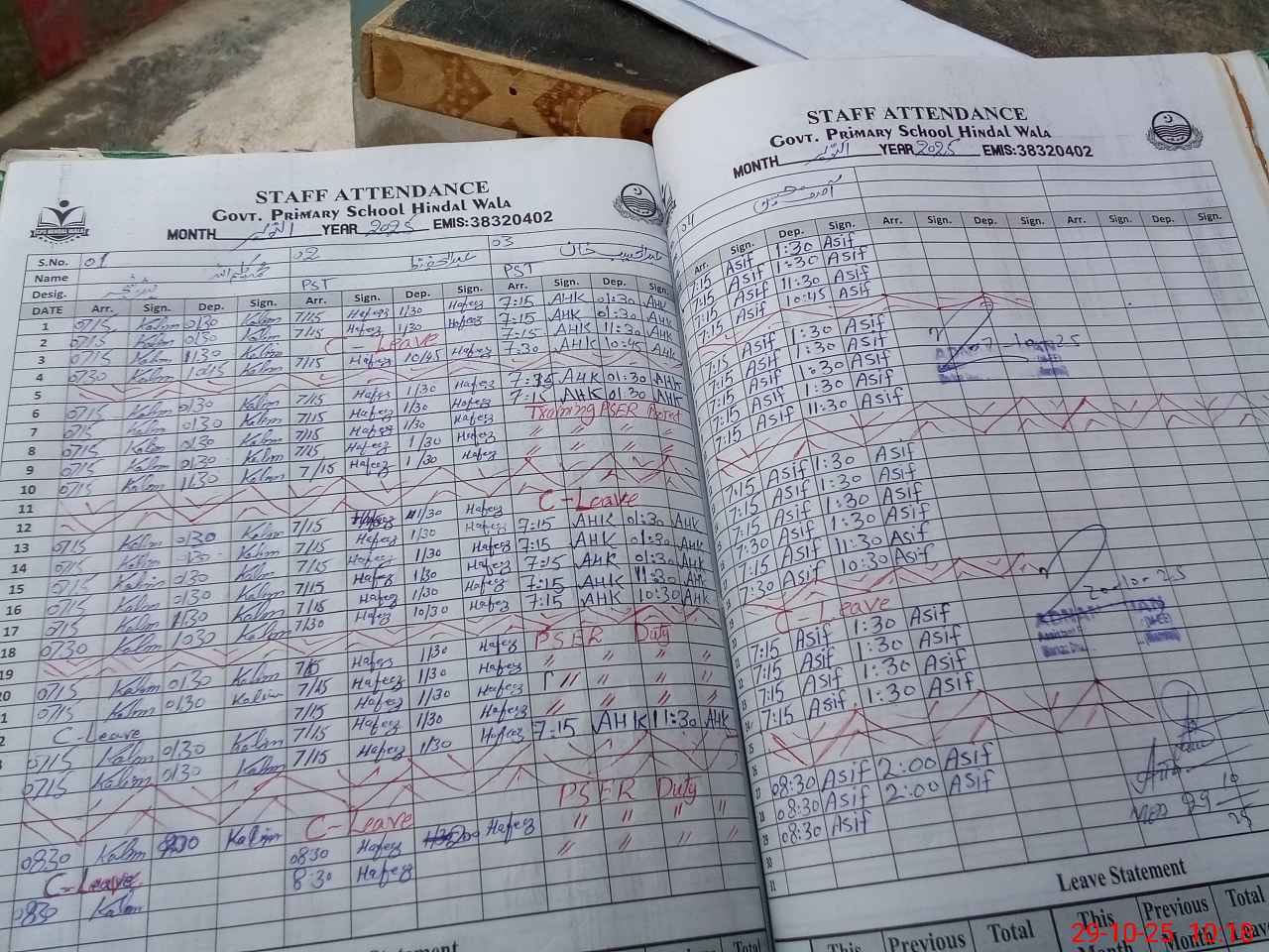 | CNIC | Full Name | Designation | R/C | Absence During Last Calender Month |