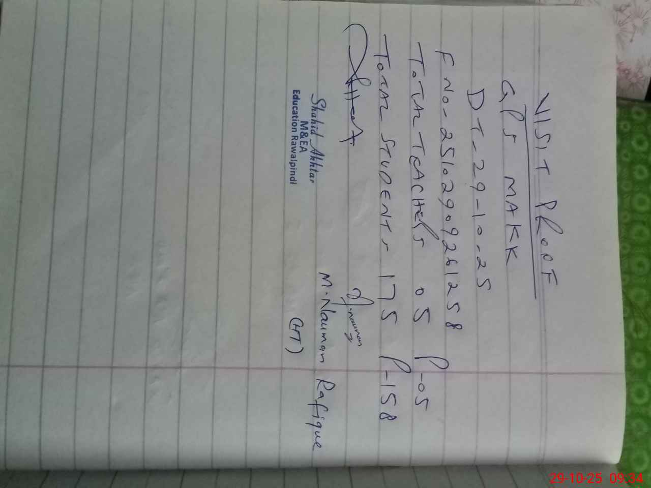 | Name: Mu**** Na**** Ra**** Designation: (School Headmaster's/Headmistress's) PST Phone/Cell Number: 03**** |