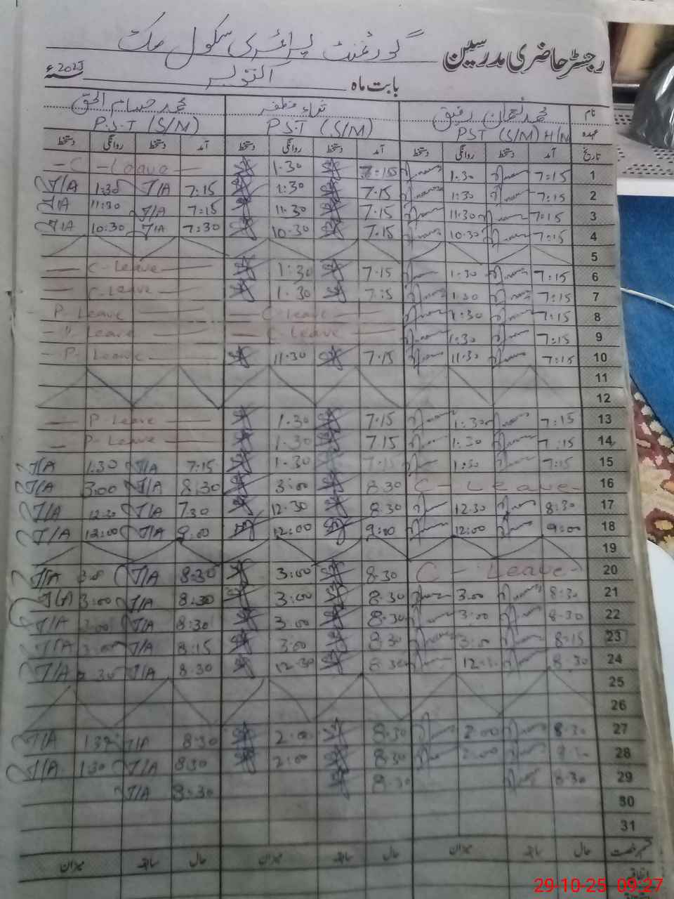 | CNIC | Full Name | Designation | R/C | Absence During Last Calender Month |