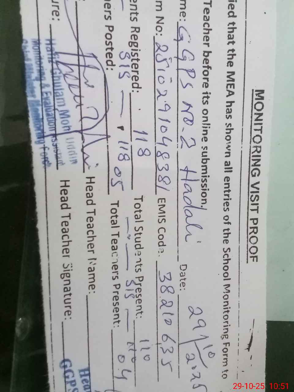 | EMIS Code: 38210635 | Name of School: GGPS NO. 2 HADALI | |||
